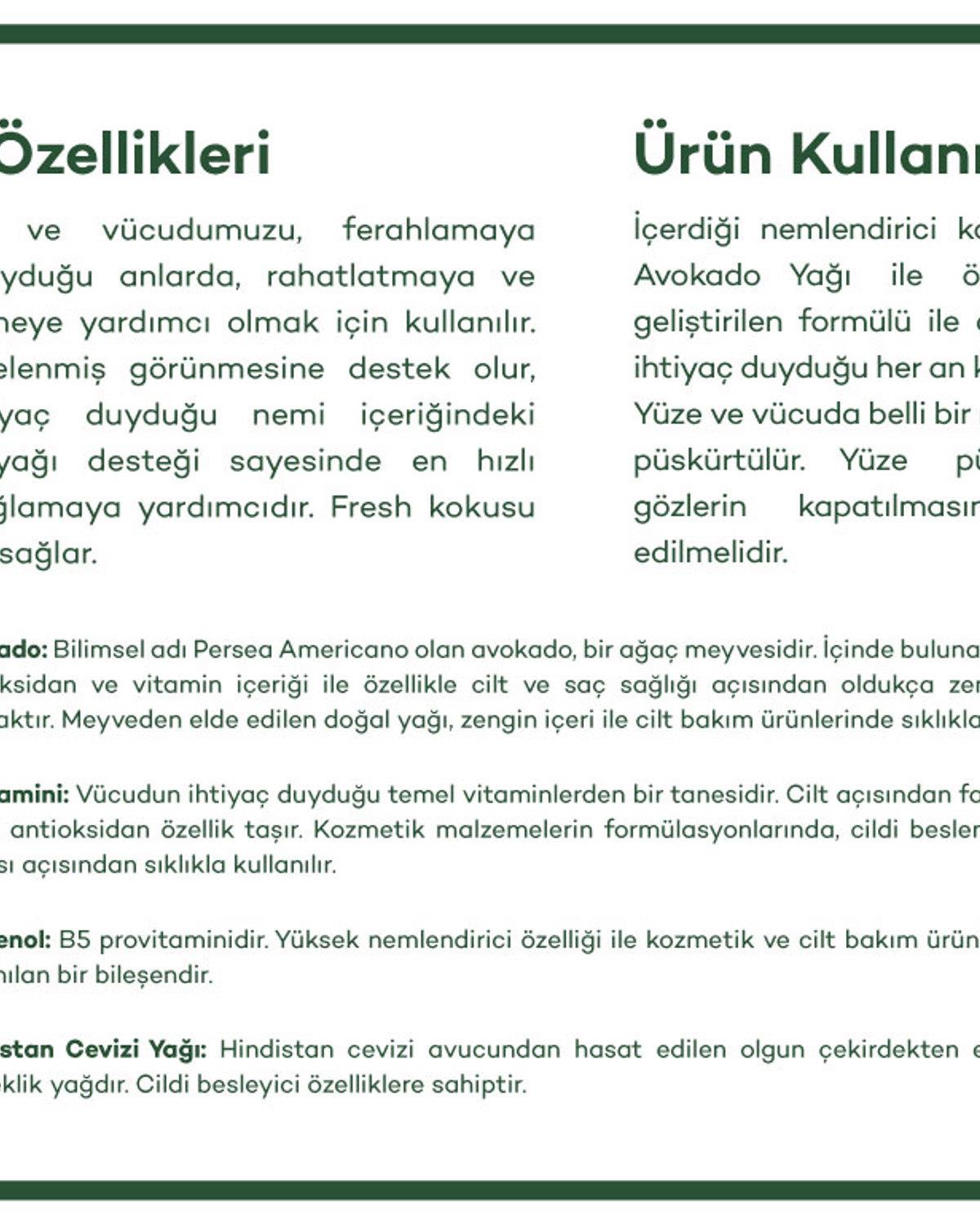 Avokado Yağı Yüz & Vücut Spreyi (000000010031724001)