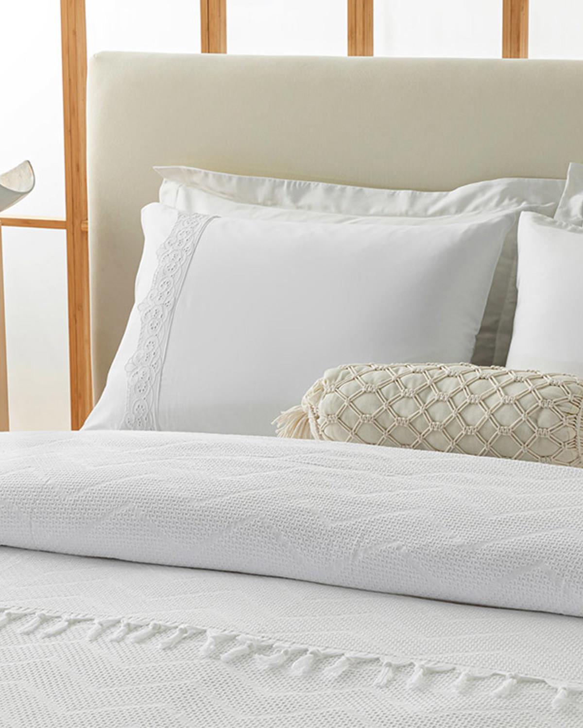 Camilla Pamuklu Jakarlı Çift Kişilik Pike Beyaz