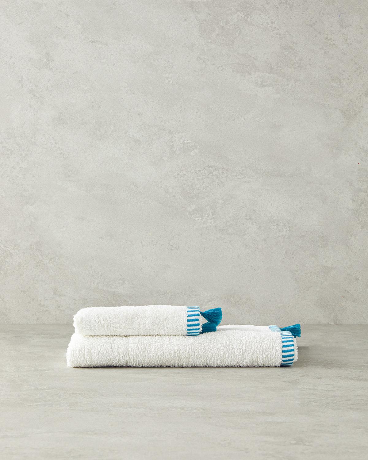 Colorful Lines Pamuklu El Havlusu 30x45 cm Ekru - Mavi (000000010042862002)