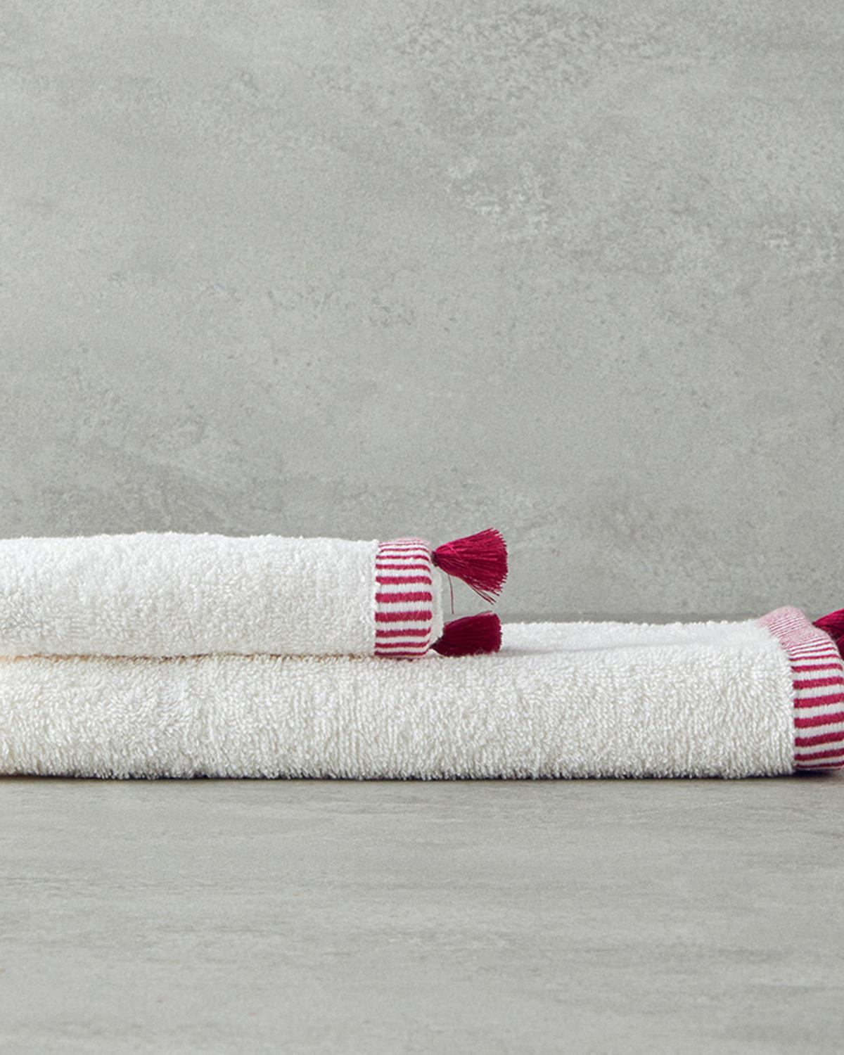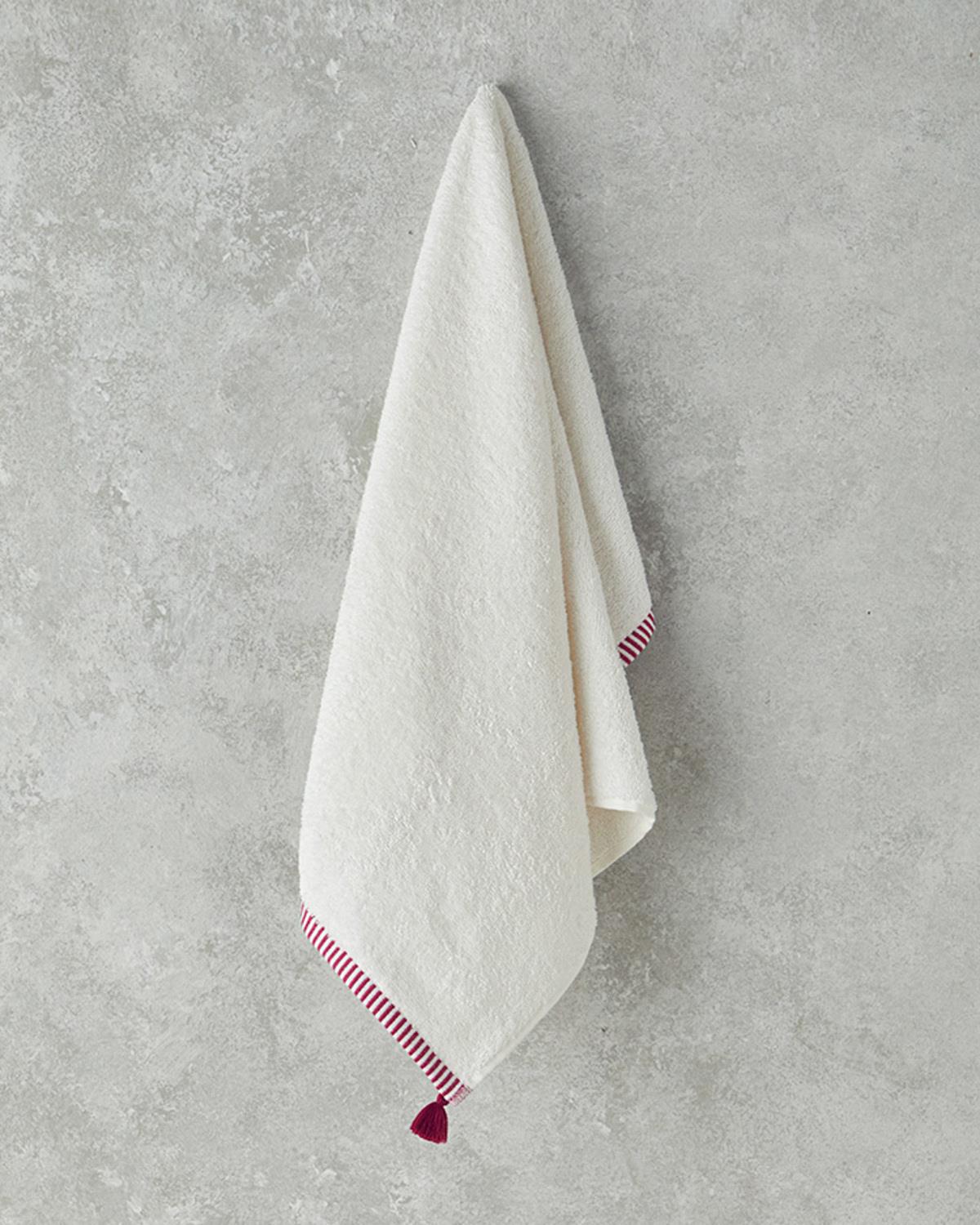 Colorful Lines Pamuklu Yüz Havlusu 50x80 cm Ekru-Fuşya (000000010042907004)