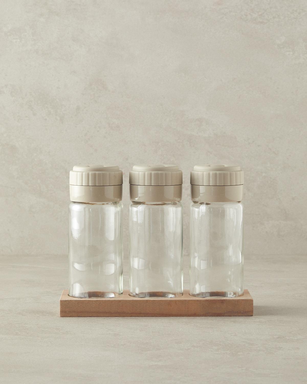 3 Adet 245 Ml Baharatlık,3 Adet Kapak,1 Adet Ahşap Stand