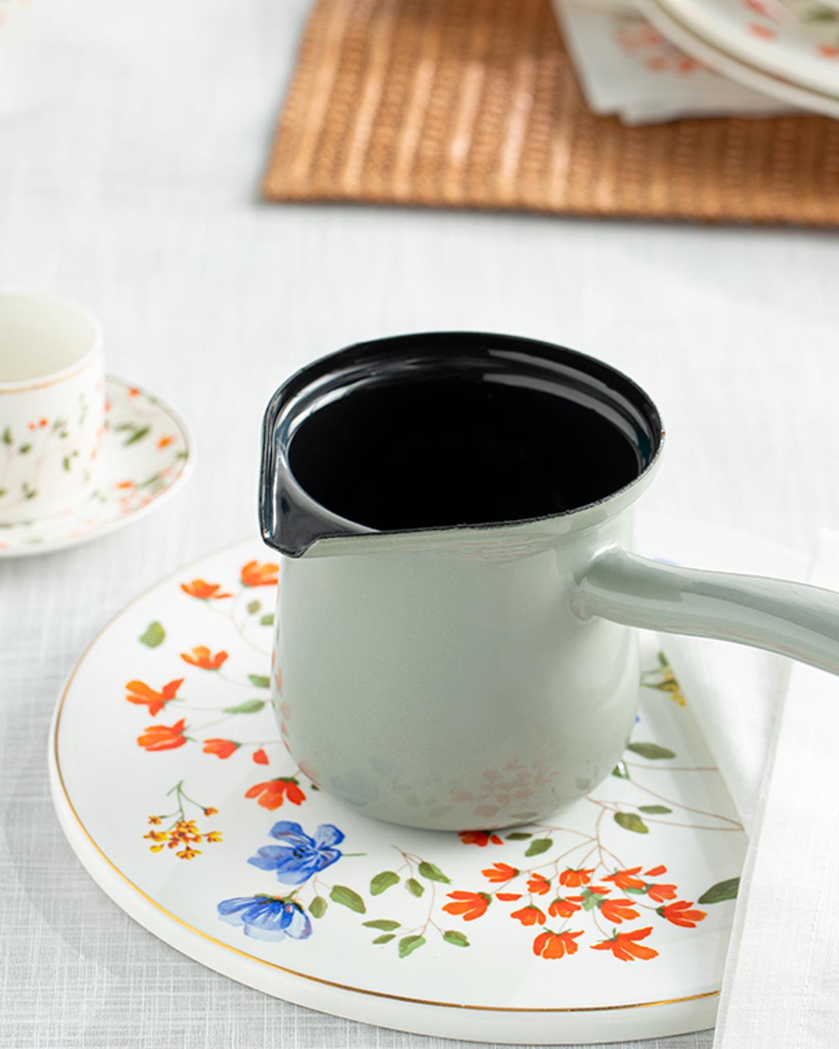 • Emaye Kaplama: Sağlam ve dayanıklı emaye yüzeyi, cezvenin uzun süre kullanıma uygun olmasını sağlar. Kahvenizi ideal kıvamda pişirmenize yardımcı olur.