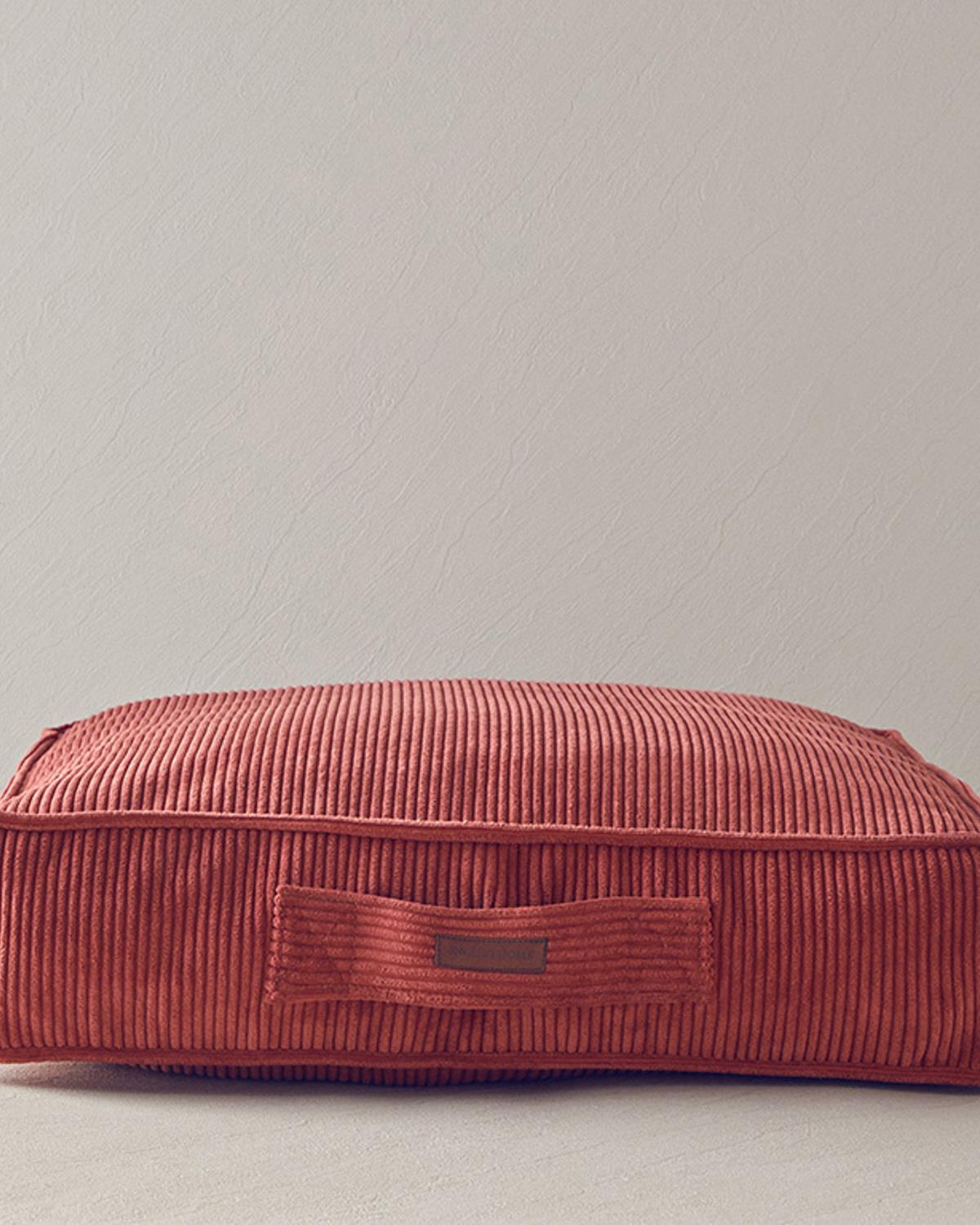 English Home yer minderi modelleri arasında, kadife dokusu ve modern kiremit rengi ile öne çıkan bu minder, yaşam alanlarınıza lüks ve rahatlık katar.