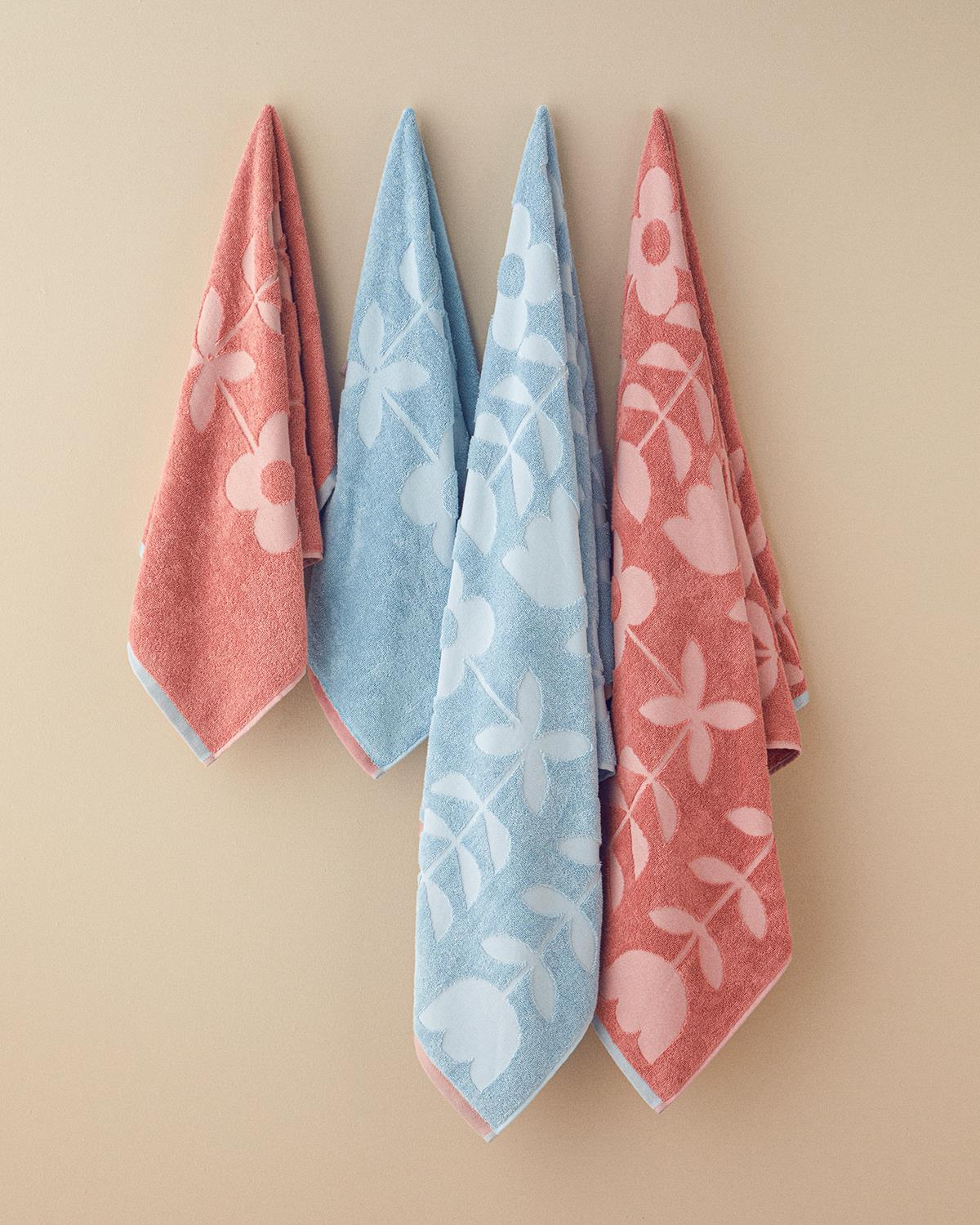 Mix Flowers Pamuklu Jakarlı Banyo Havlusu 70x140 cm Mavi Mix Flowers Pamuklu Jakarlı Banyo Havlusu 70x140 cm Pembe