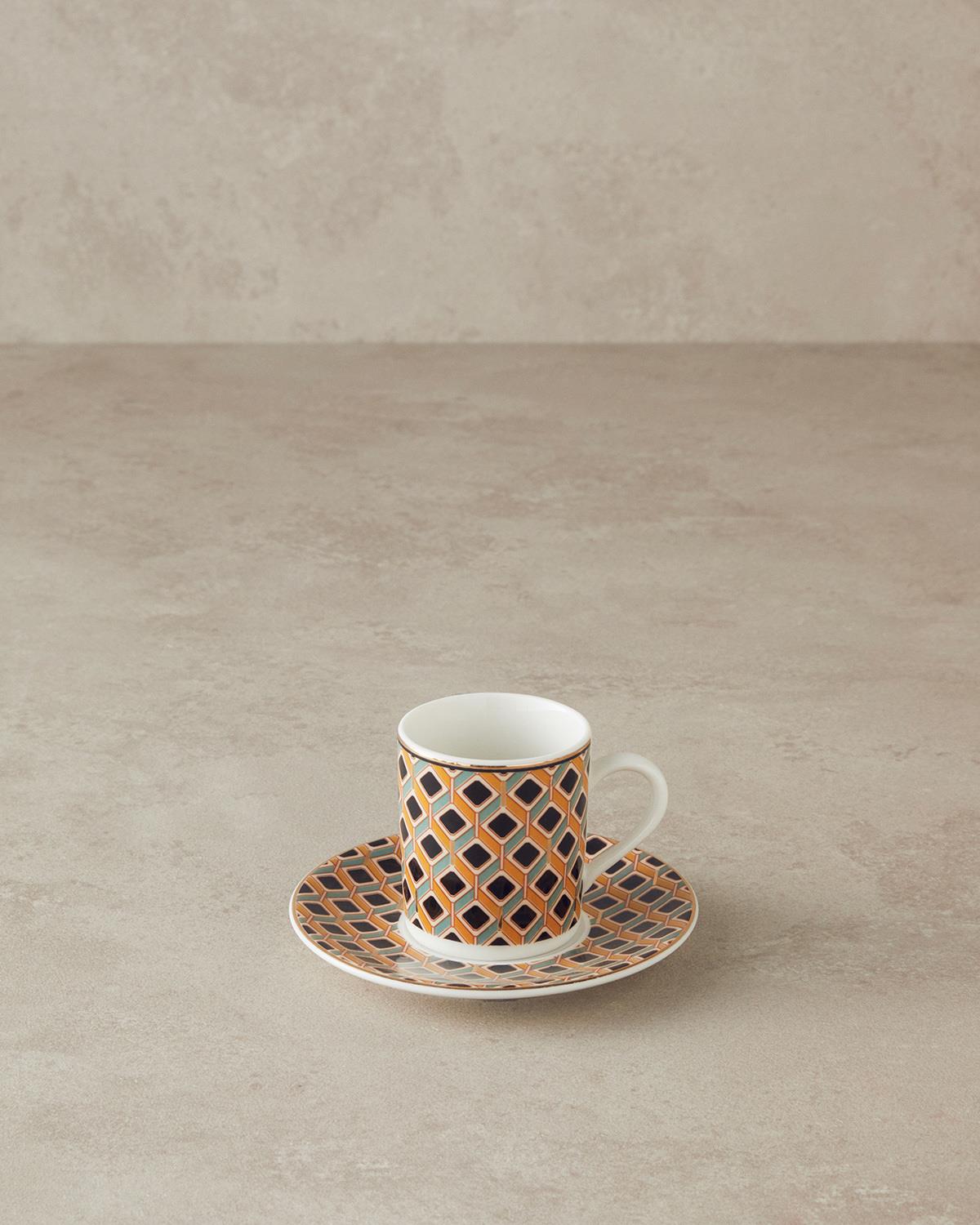 Modern Cube Bone Porselen Kahve Fincan Takımı 4 Parça 2 Kişilik Sarı (000000010041243003)