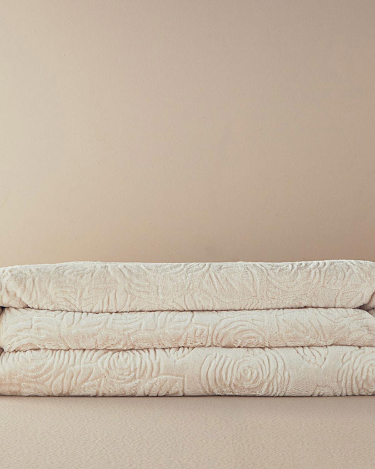 Shabby Rose Emboss Çift Kişilik Battaniye Krem (000000010037240002)