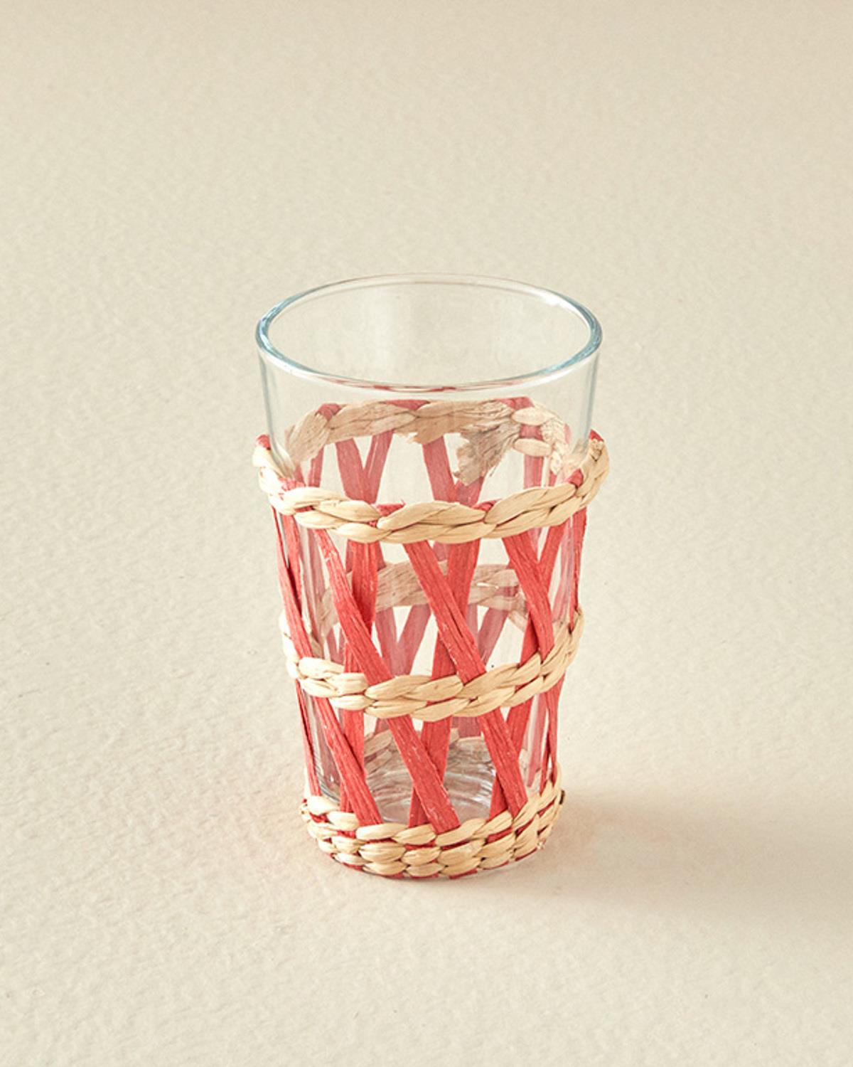 Stripe Wicker Cam Hasırlı Meşrubat 320 Ml Bardağı Turuncu