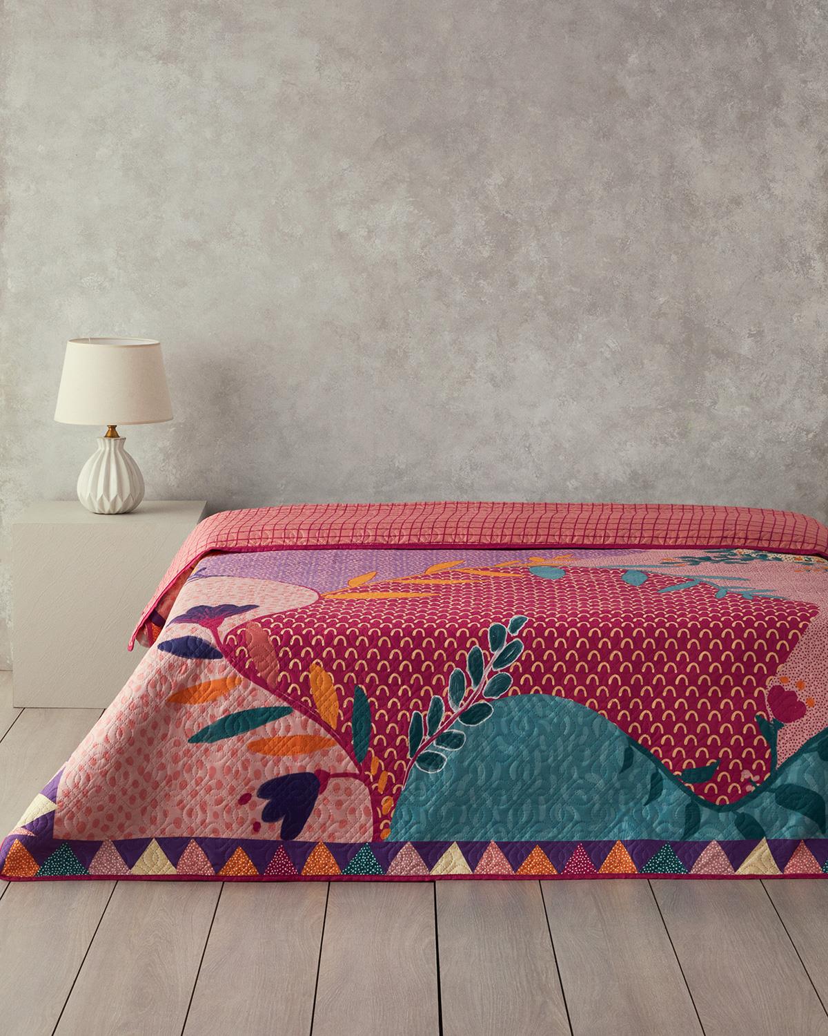 English Home tek kişilik çok amaçlı örtüsünü yataklarınızda, koltuklarınızda ve piknik alanlarında kullanabilirsiniz. Pembe tonları ve tropik desenler ile tasarlanmıştır. Yatak odalarınıza baharın tazeliğini ve canlılığını taşır. Çift taraflı kullanıma uygundur. İlk yıkamada ürünü mutlaka çamaşır makinasında 30°'de tek başına yıkayınız. Sererek kurutma yapınız.